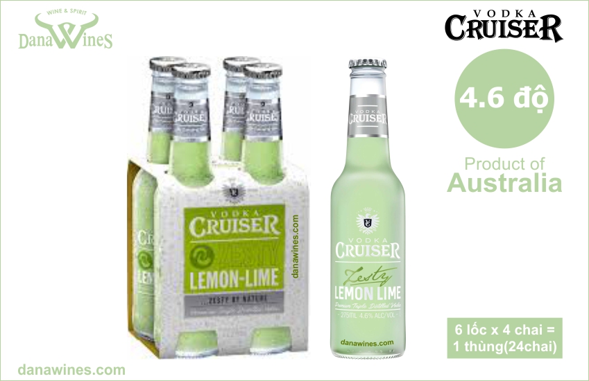 - Rượu Trái Cây – Cocktail Vodka Cruiser Zesty Lemon - Lime hương chanh: sự kết hợp độc đáo và khá thú vị giữa chanh vàng và chanh xanh cho ra hương vị vừa cam vừa chanh phong cách cổ điển. Cocktail Vodka Cruiser Zesty Lemon - Lime hương chanh là dòng cocktail có độ rượu nhẹ nhàng (4.6%) cùng hương trái cây thơm ngát. Sảm phẩm được đánh giá là loại cocktail thích hợp cho phụ nữ thưởng thức, đăc biệt trong những bữa tiệc picnic, bãi biển, hồ bơi hay những khi trò chuyện cùng bạn bè. Tìm hiểu thêm Cocktail Vodka Cruiser Zesty Lemon - Lime hương chanh.